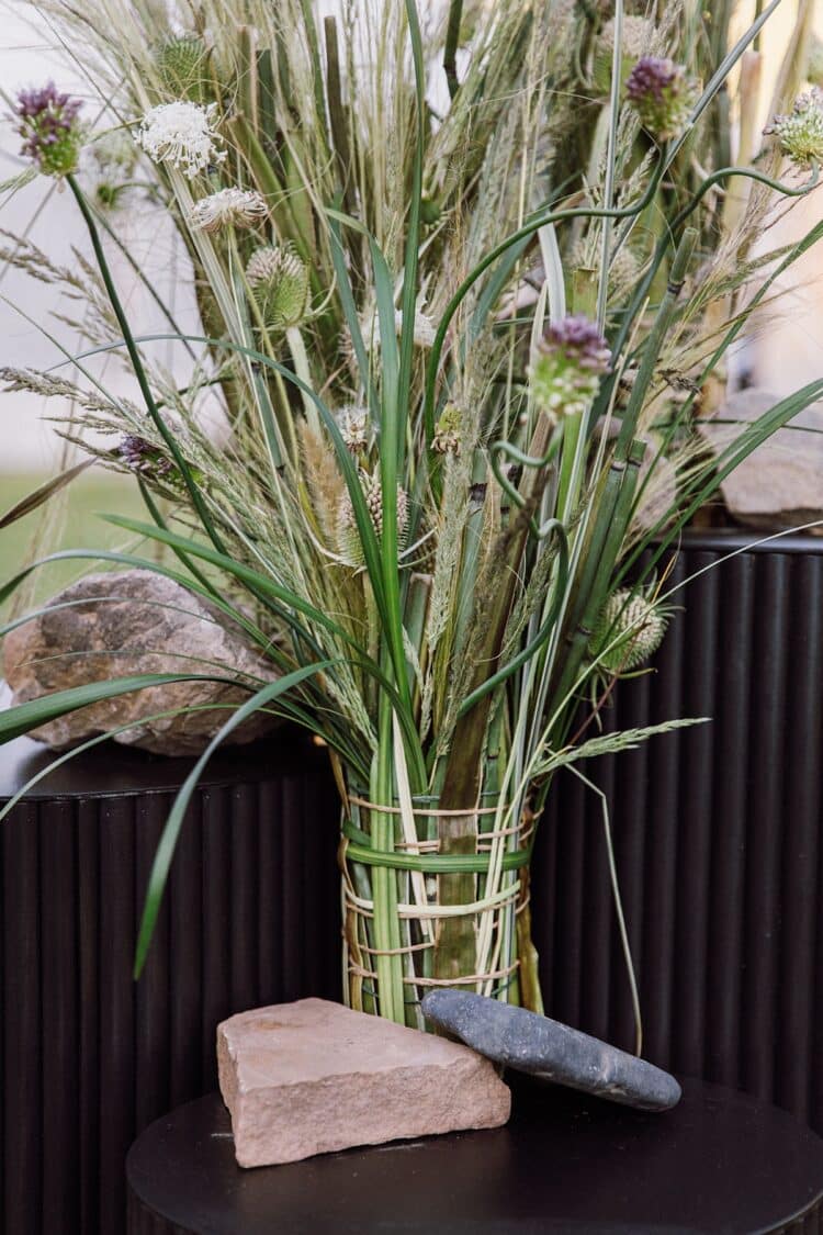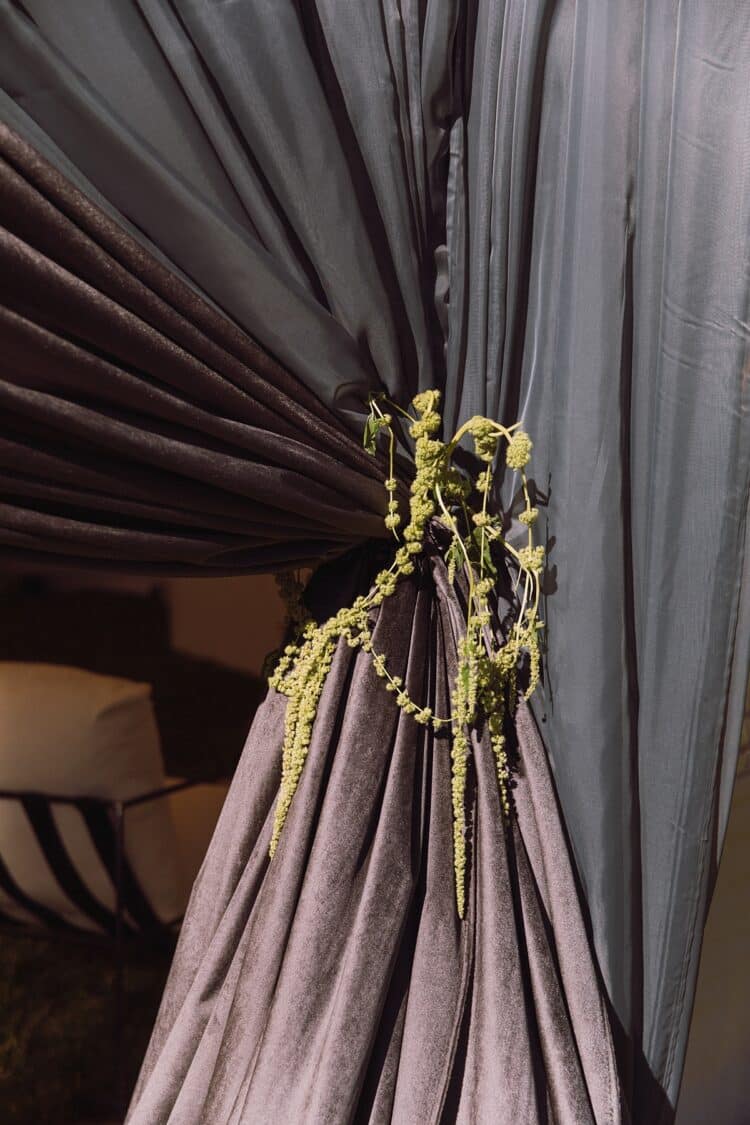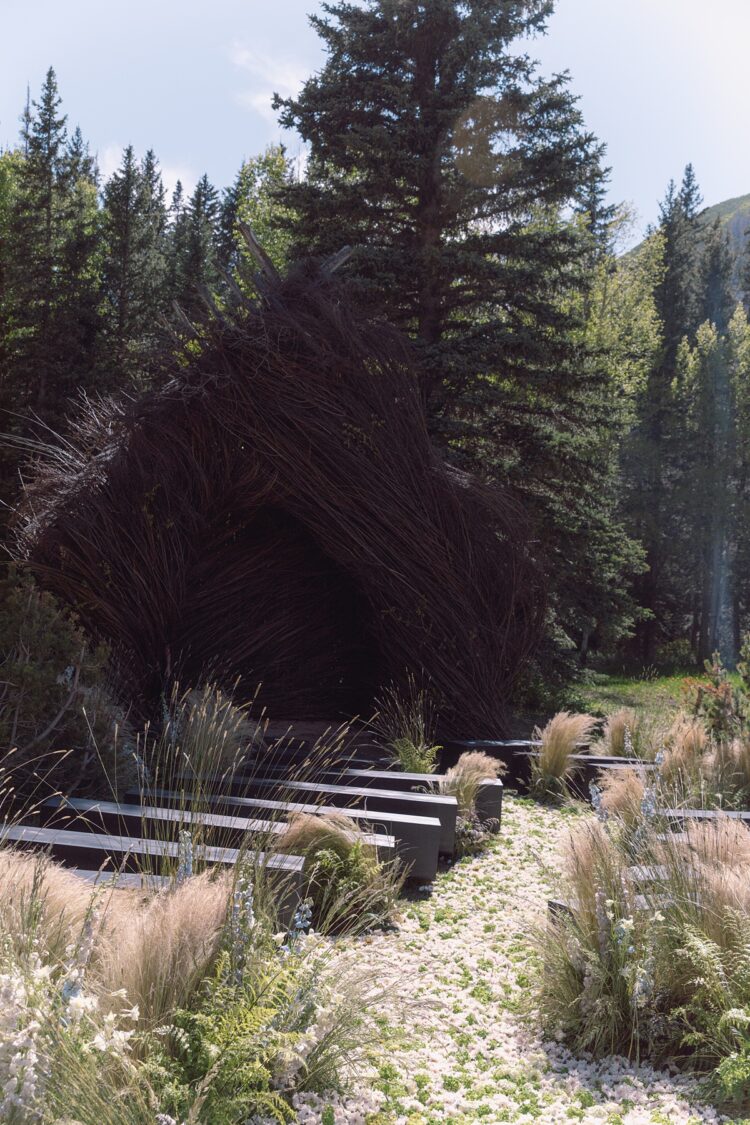 The design elements we created throughout the weekend were created based on some of their favorite art pieces, or were meant to represent the many emotions experienced in life and love. The ceremony structure was woven out of thousands of willow sticks, to create a ‘portal’ for them for to share their vows in. The aisle was meant to feel wild and fleeting. The full flower heads lining the aisle walkway were tromped through, representing walking towards love with reckless abandonment.