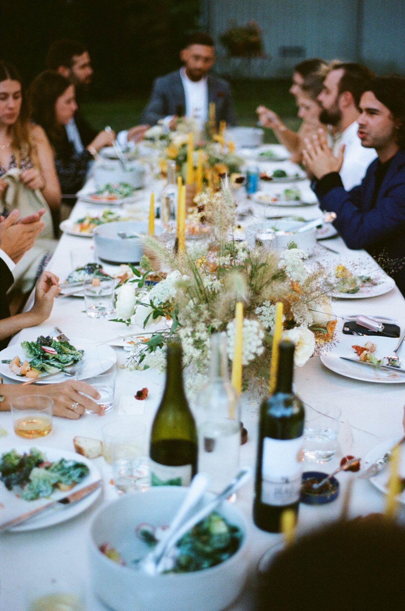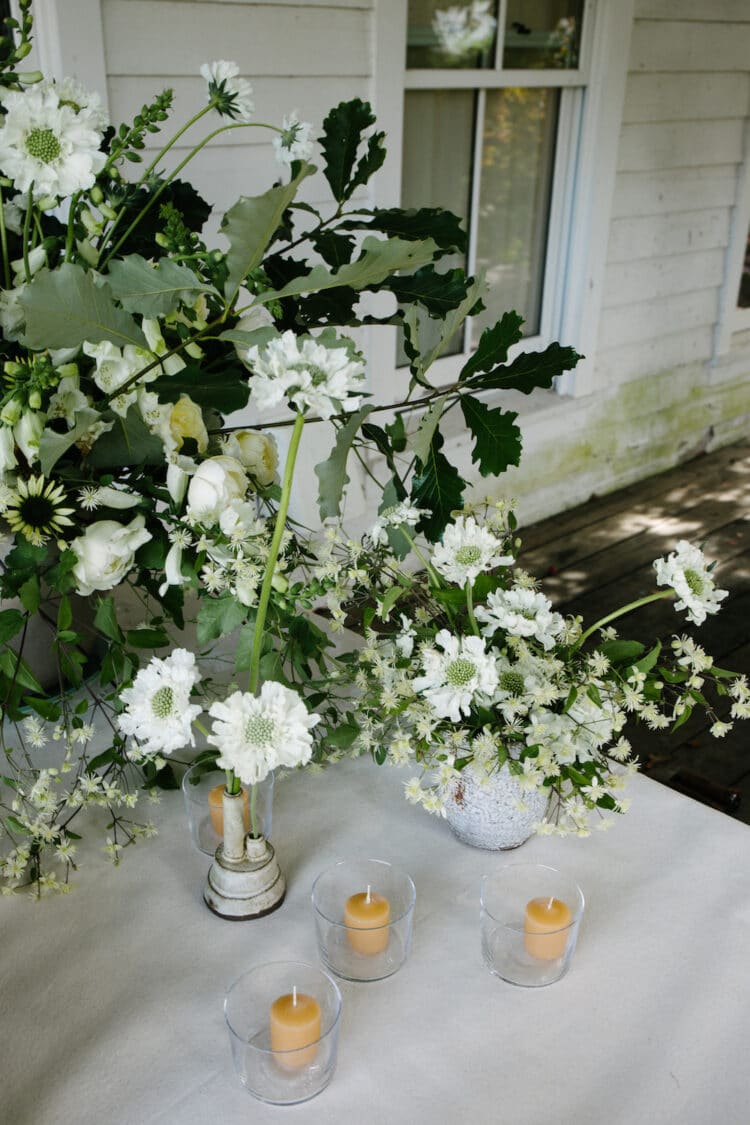 That playlist is one that I now play on my own at home now, when I’m cooking or just puttering around the house enjoying my day. It reminds me of the good vibes at their wedding, and why I love my job. I love all kinds of jobs, the big and the small. This one was one of the special ones where I knew the couple, I got to buy all locally grown flowers for the event, pick some of them myself at a farm one mile away from the venue, and that quick stop at the farmers market on the way to set up surprised us with the most beautiful mushrooms that became a part of the tablescape. I left feeling so fulfilled and full of gratitude, thankful for the wonderful people I get to know and work with, for the flowers, and that this is my job. Happy anniversary Jess and Luc!