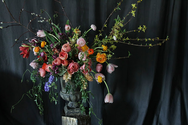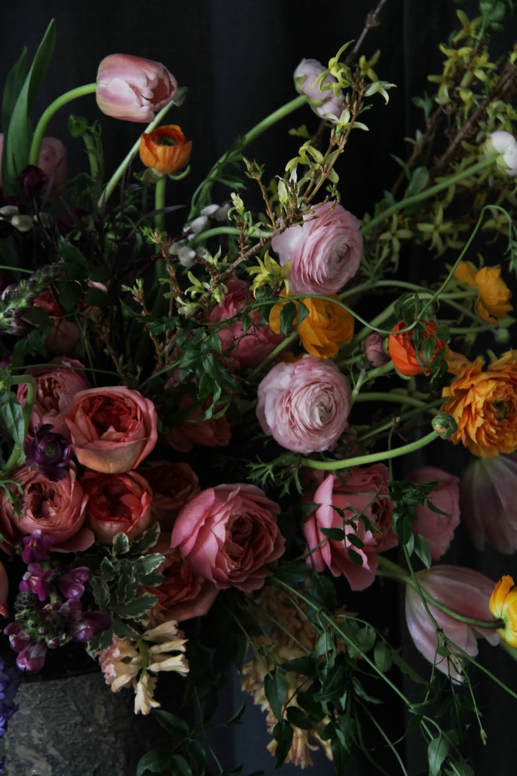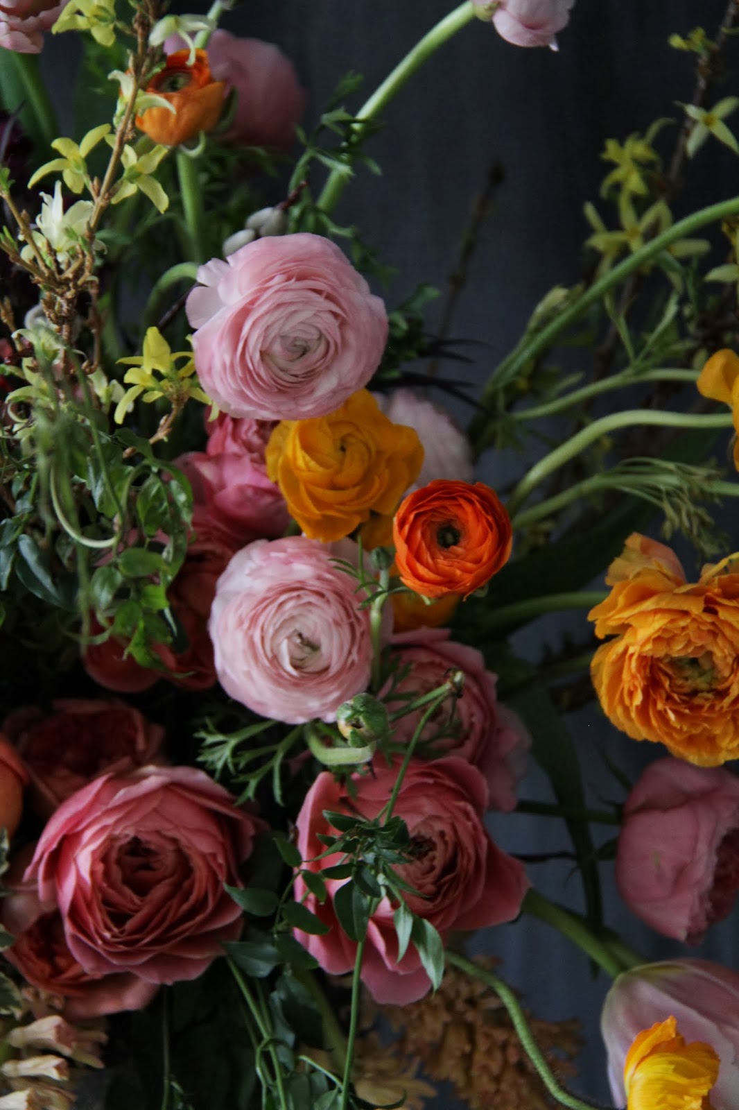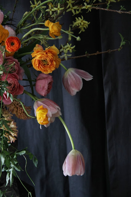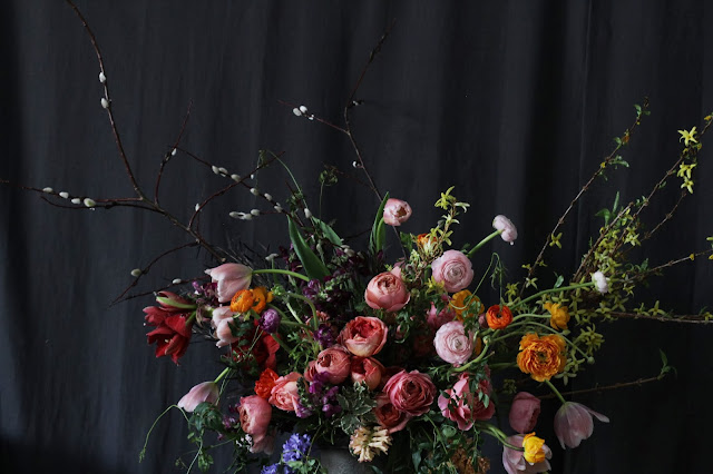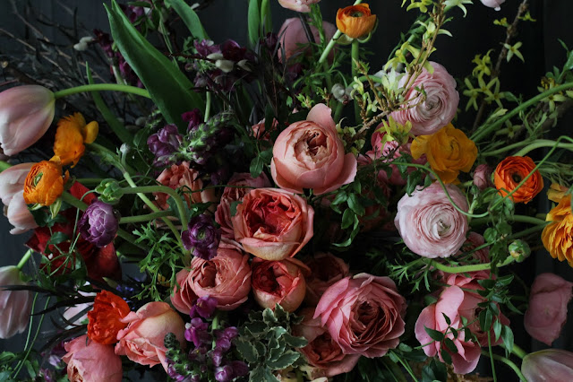 I made this arrangement almost a year ago, with leftovers from the flowers I did for alt summit. It had one of everything in it, and so many colors. I like its recklessness. Bam.